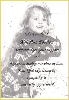 Sadly, Kali's body was found on August 10th, 1996. She had been the victim of another senseless murder.