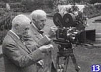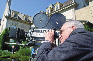 Actor Martin Flax, portraying George Eastman, shoots dinner guests in the gardens of Eastman’s East Avenue estate on a Cine Kodak camera, re-creating the breakthrough of color home movies made 75 years ago Wednesday. George is spinning in his grave !